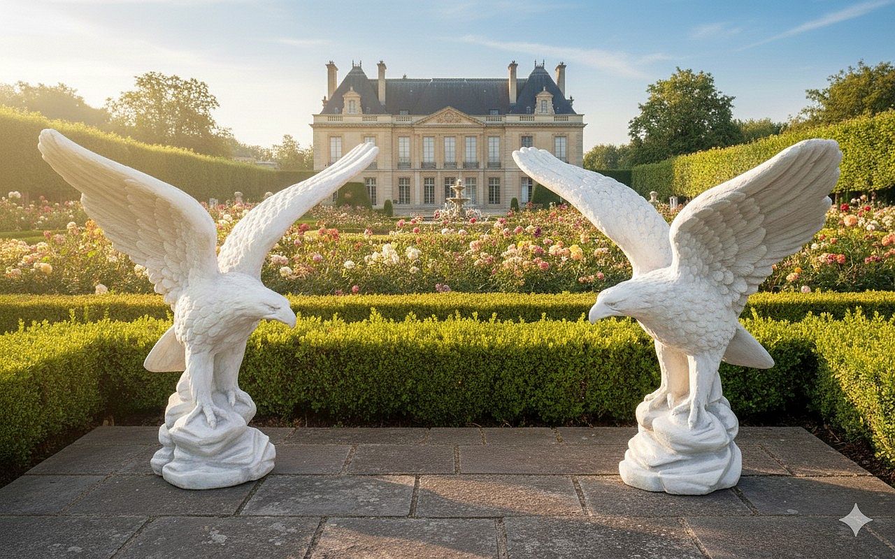 Die Steinadler Figuren sind ideal für repräsentative Aufstellung auf Torpfeilern, Säulen oder Mauerkanten. Ihre kraftvolle Symbolik steht für Stärke, Freiheit und Schutz – klassische Attribute des Königs der Lüfte. Die symmetrische Ausführung als Links- und Rechtsfigur schafft ein harmonisches Gesamtbild mit architektonischer Präzision.