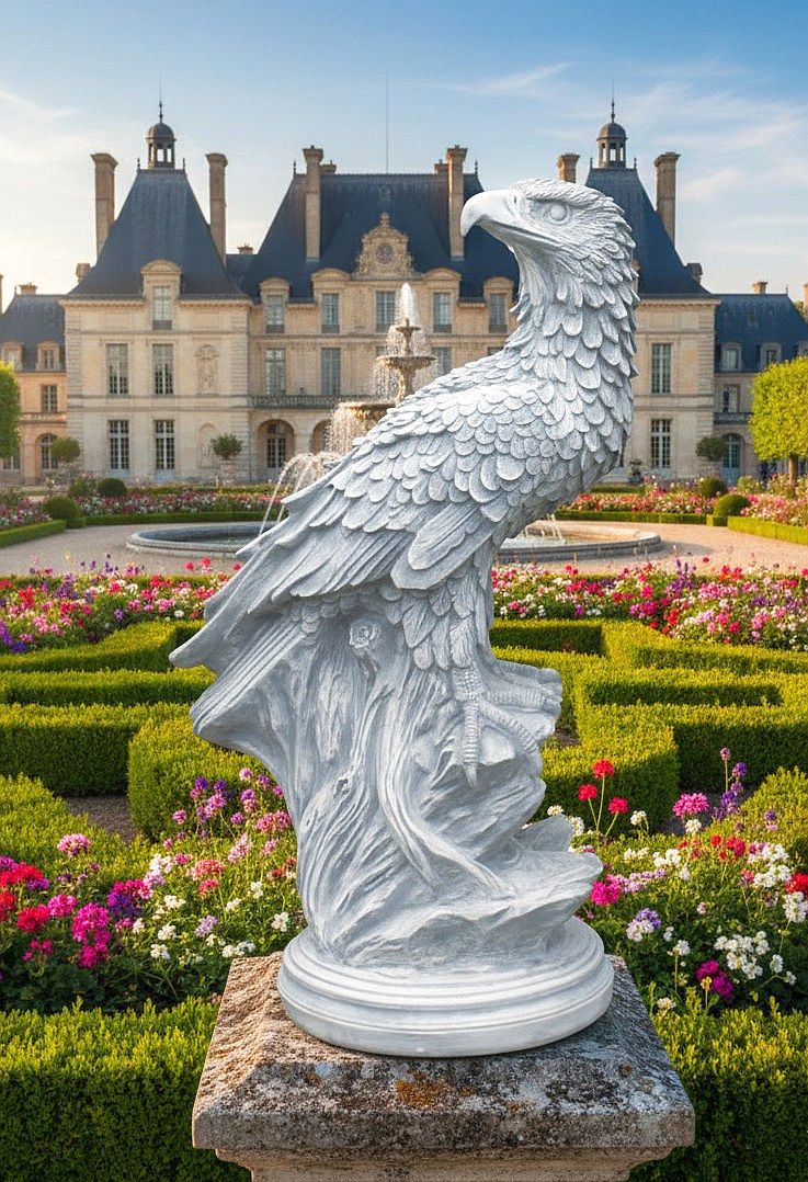 - Adlerfigur als markante Gartenfigur aus massivem Weißbeton Steinguss