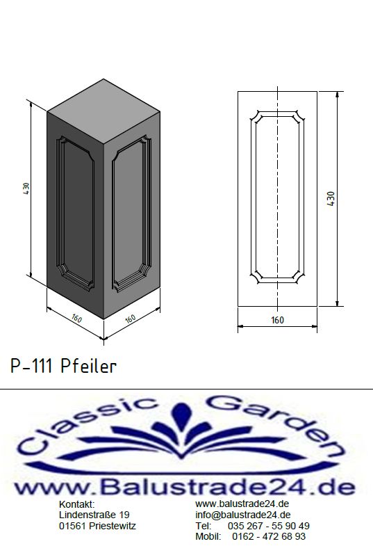 P111 Betonpfeiler Balustraden Vierkant Pfeiler 43cm
