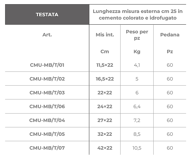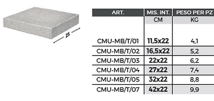 - Die Kopfplatte oder auch als Endplatte bezeichnet, ist auf der Oberseite gemessen, nur 25cm lang / Unterseite 20cm und wird an die normalen Mauerabdeckplatten nur als Kopfstück, bei einer frei endenden Mauer, angesetzt.