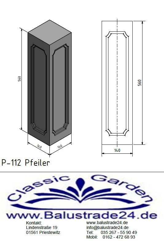 P112 Betonpfeiler Balustraden Vierkant Pfeiler 56cm