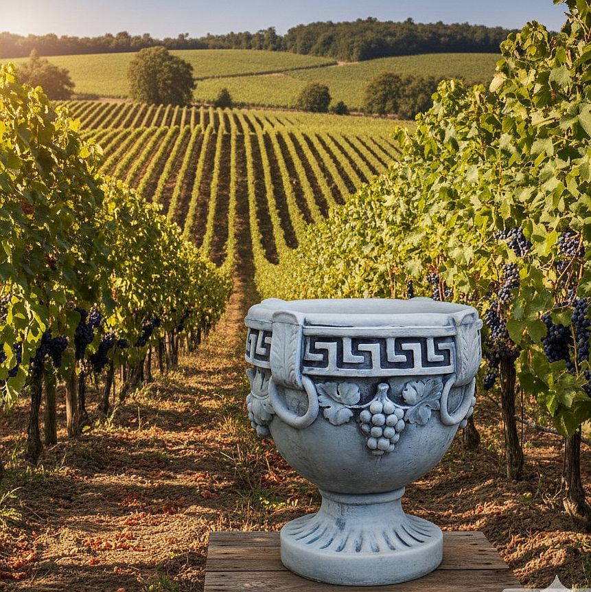 Startseite » Gartendekoration » Pflanzgefäße Beton Steinguss Kübel Pflanzkästen Blumenschalen » Pflanzgefäß mit Mäanderband Weintrauben römischer Weinkelch Ziervase 47cm