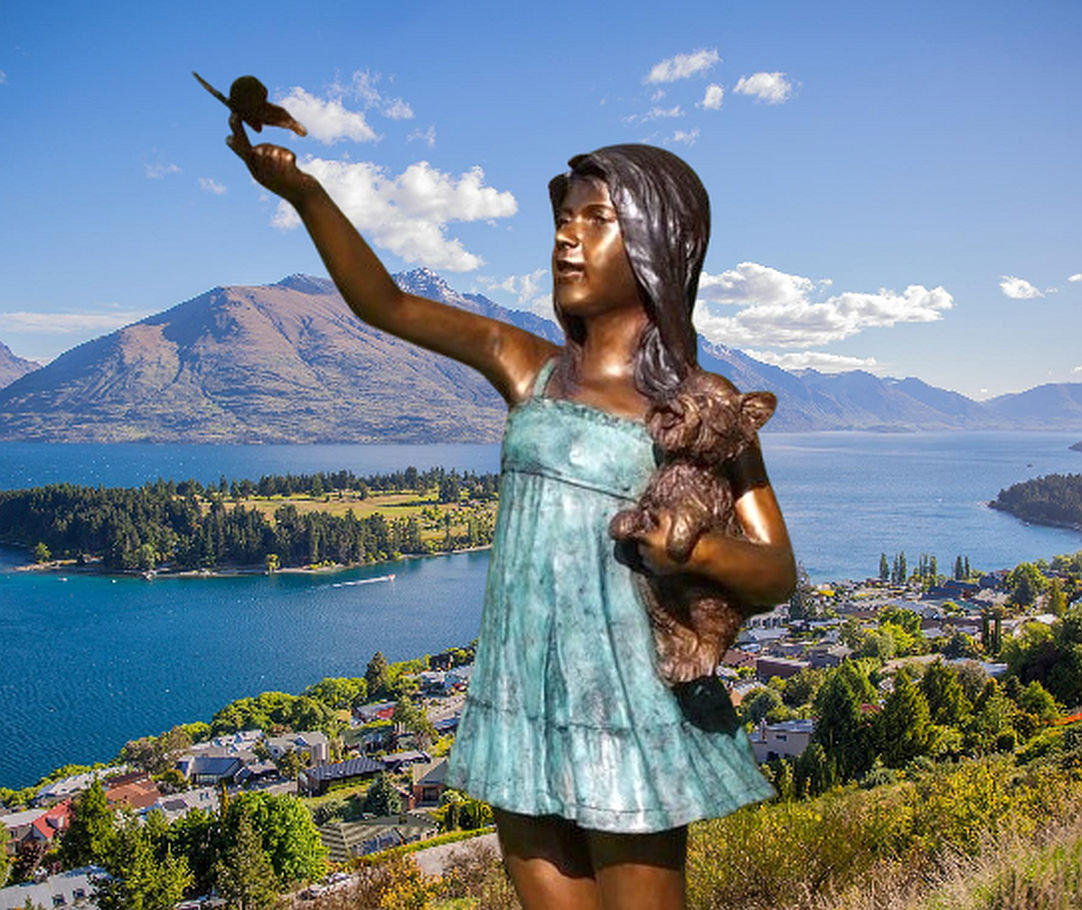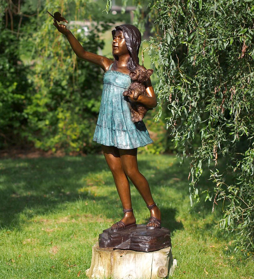Bronzefigur „Mädchen mit Schmetterling in der Hand“ – Zauberhafte Gartendekoration für Bronze-Liebhaber