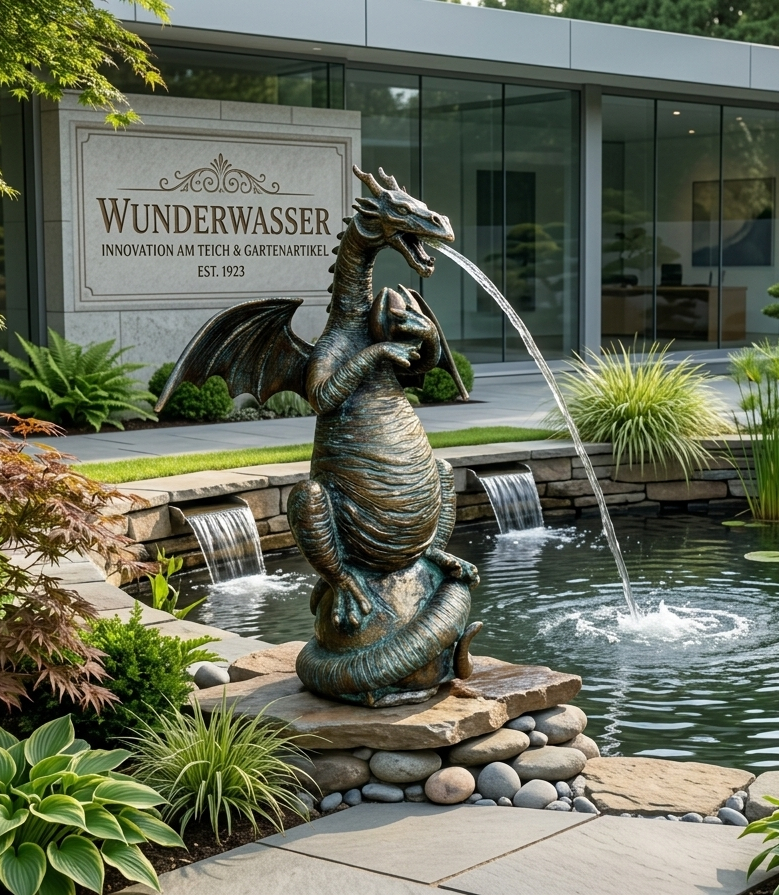 Die filigrane Gestaltung zeigt den Drachen mit offenem Maul, schuppiger Haut und verspielten Details, die ihn lebendig wirken lassen. Perfekt für Gartenteiche, Bachläufe oder kleine Brunnen sorgt er für entspannende Wasserspiele. Die kompakte Größe macht ihn flexibel einsetzbar, während Gewindestifte eine sichere Fixierung auf Steinen oder Sockeln gewährleisten. Leichte Abweichungen in Maßen und Farbe sind bei Handarbeit typisch und unterstreichen die Einzigartigkeit jeder Figur.