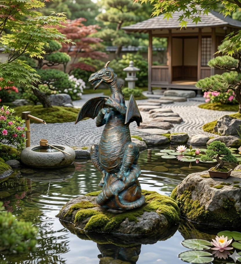 Handgefertigt aus hochwertiger Bronze im traditionellen Gussverfahren, überzeugt diese Rottenecker-Figur durch ihre Wetterfestigkeit und Frostsicherheit. Das Material widersteht Regen, Sonne und Temperaturschwankungen, während eine natürliche Patina eine einzigartige Patina entstehen lässt. Auch ohne Wasseranschluss dient der Drache als dekoratives Kunstobjekt und bringt mythischen Charme und gute Laune in Beete, Terrassen oder Teichränder.