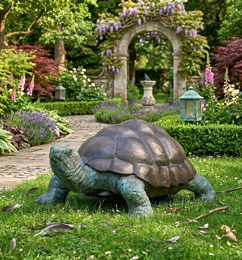 Auch im Innenbereich sorgt die Bronze Schildkröte für ein stilvolles Ambiente. Ob als dekoratives Element in Wohnräumen oder als symbolische Geschenkidee für Tierliebhaber – diese Galapagos Schildkröte aus Bronze vereint Eleganz und Natürlichkeit auf eindrucksvolle Weise.