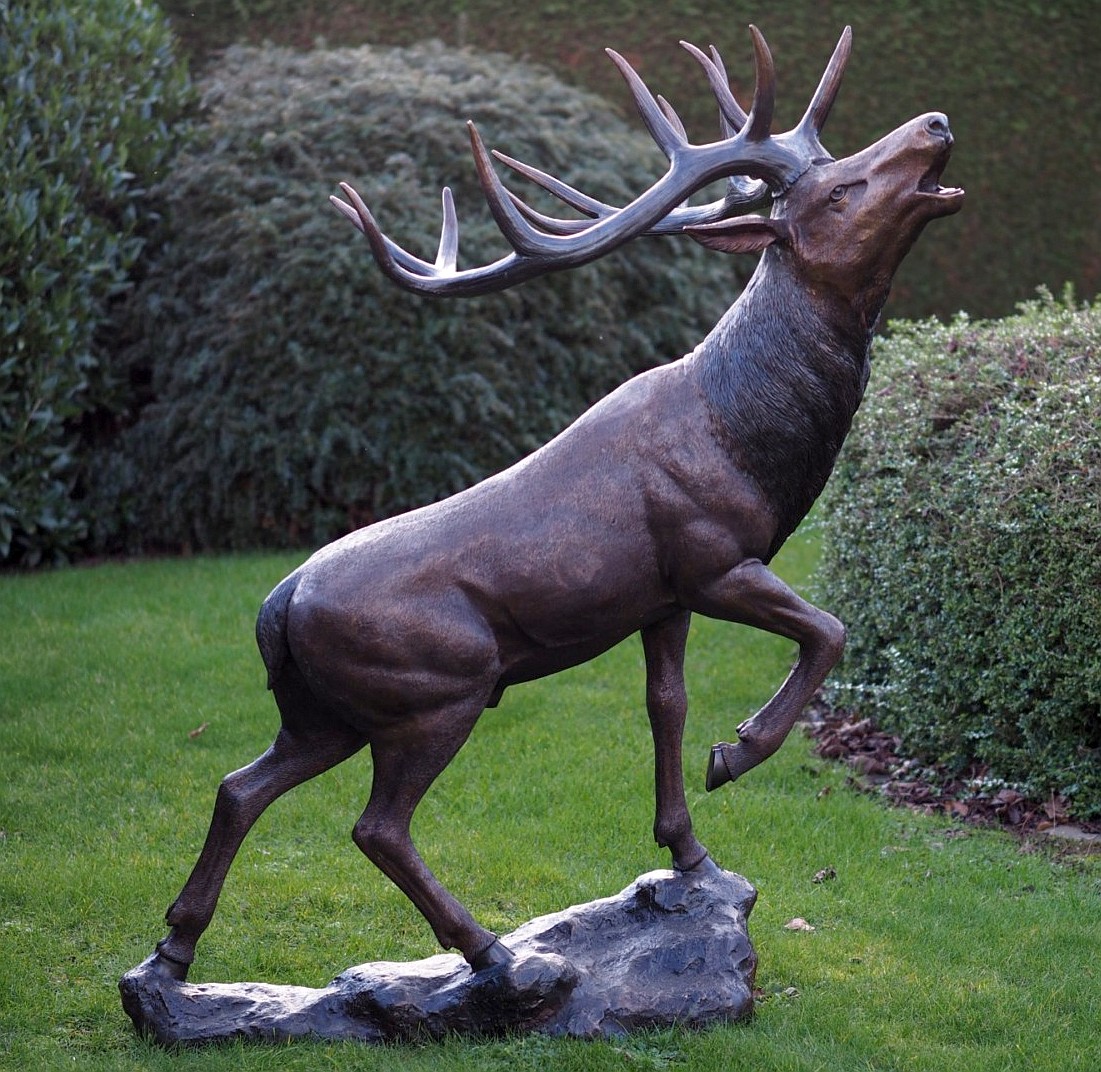 Startseite » Bronze » Bronze Tier Figuren » Brüllender Hirsch - Bronze Figur Majestätische Skulptur mit großem Geweih 170cm