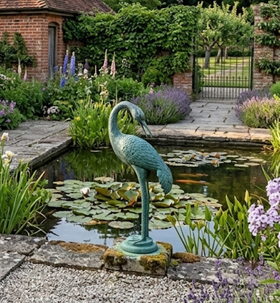 Als dekoratives Highlight fügt sich der Reiher sowohl in moderne als auch in klassische Gartengestaltungen ein. Er eignet sich hervorragend als dezenter Akzent im Eingangsbereich, als Blickfang in der Nähe von Wasserflächen oder als stilvolle Skulptur auf der Terrasse.