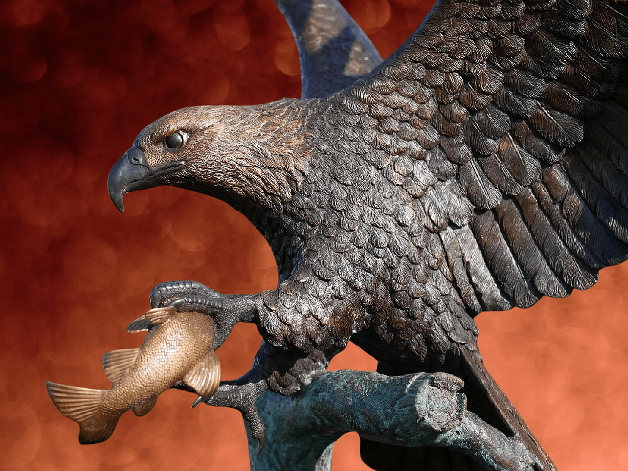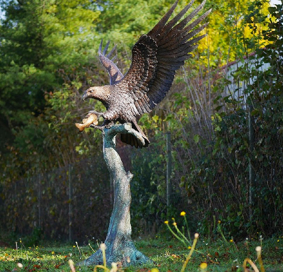 Monumentale Bronzefigur Seeadler – Gartenfigur mit Fisch Bronze Figur 233cm