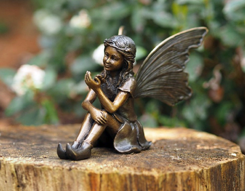 Diese wunderschöne Bronzefigur „Kleine Elfe“ bringt märchenhaften Zauber in Ihren Garten. Mit filigranen Flügeln, anmutiger Körperhaltung und liebevollen Details verkörpert die Elfe Leichtigkeit, Harmonie und Naturverbundenheit. Ob zwischen Blumen, am Teichrand oder auf einer Terrasse – diese Gartenfigur verleiht jedem Ort eine besondere, magische Atmosphäre. Zauberhadte kleine Bronzefigur, einer sitzende Elfe mit Schmetterling Figur in der Hand.
