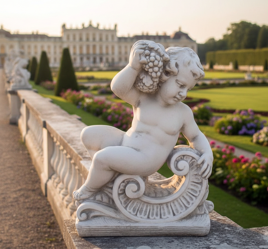 - Gartenfigur Putte „Automne“ – Darstellung des Herbstes