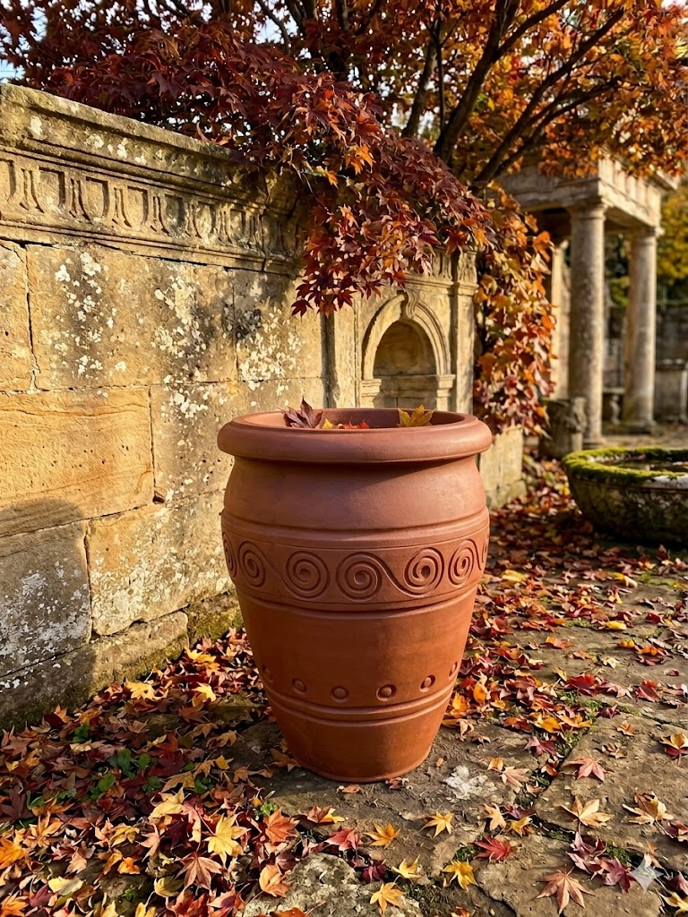 Dieser römisch inspirierte Pflanztopf verbindet klassische Formgebung mit dekorativer Funktion und bringt antikes Flair in Ihren Garten oder Außenbereich. Die Gestaltung orientiert sich an historischen Vorbildern und verleiht dem Pflanzgefäß eine besonders edle Ausstrahlung. Als stilvoller Pflanztopf Garten eignet sich dieses Modell ideal für Terrassen, Eingangsbereiche oder repräsentative Gartenanlagen. Die harmonischen Proportionen sorgen für eine ausgewogene und elegante Optik im Sil eines terracotta Pflanztopf Gefäß.