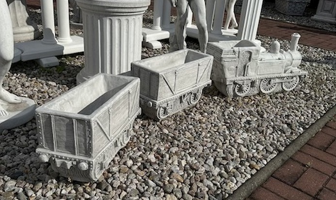 Startseite » Gartendekoration » Pflanzgefäße Beton Steingss Kübel Pflanzkästen Blumenschalen » Eisenbahn alte Dampflokomotive mit Anhänger Gartendekoration bepflanzbar