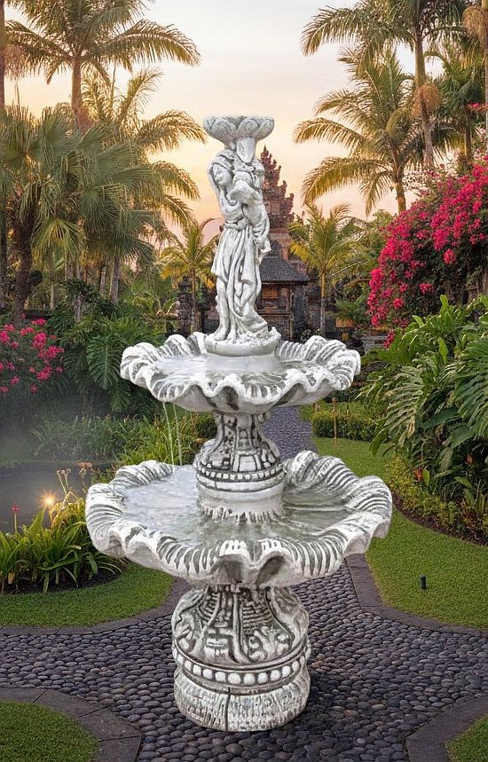 Startseite » Gartenbrunnen » Springbrunnen Standbrunnen » Gartenbrunnen mit Gartenfigur Frau mit Wasserschale und 2 Wasserbecken Garten Springbrunnen 161cm