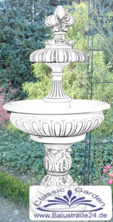 - Brunnen ist aus massivem Weißbeton gegossen, im Steinguss Verfahren, mit Formen hergestellt.