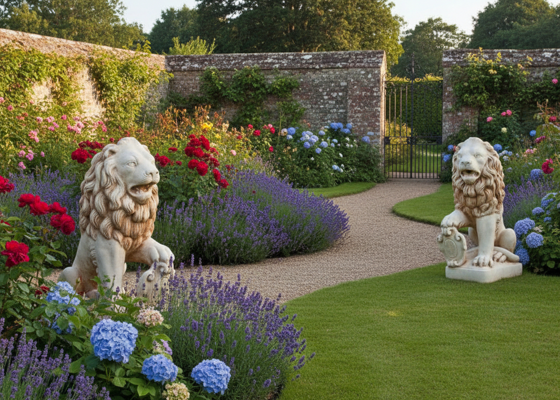 - Zeitlose, hochwertige Löwen Gartenfiguren mit Wappen