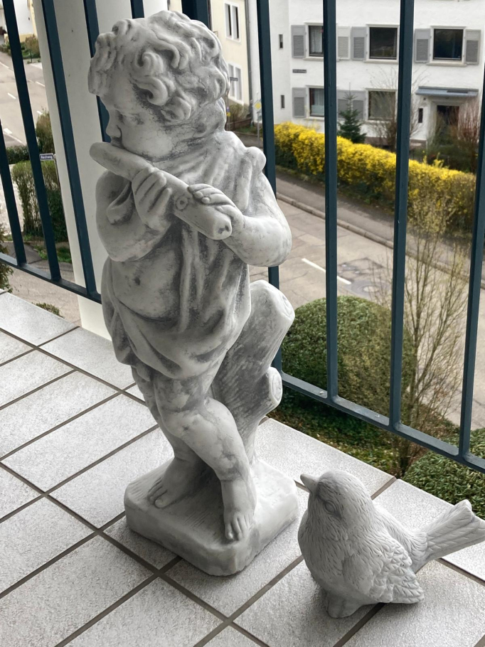 - zeitlos, schöne Putten Gartenfigur mit Musikinstrument Blockflöte