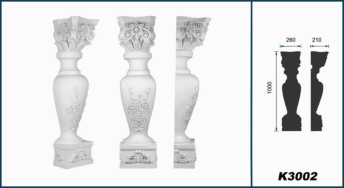K3005 Kaminportal und 2 Stück K3002 Kamin Baluster Säulen