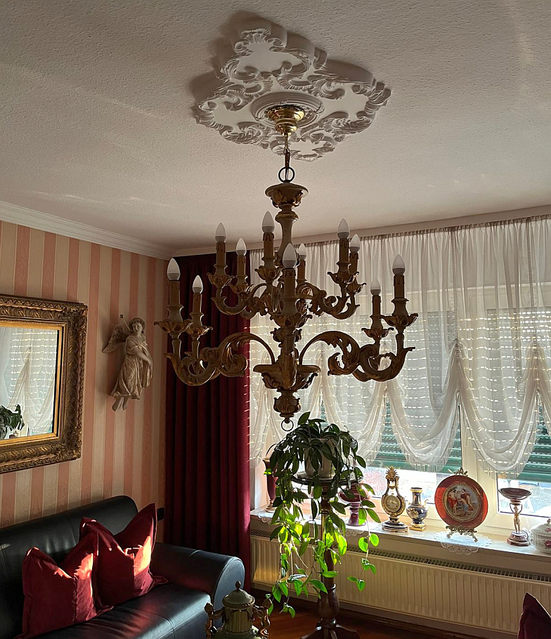 Trotz der hochwertigen Herstellung sollte die Oberfläche vor der endgültigen Montage leicht nachbearbeitet und anschließend überstrichen werden. Erst durch diese Nachbehandlung wird der ideale optische Effekt erzielt und die hochwertige Wirkung der Deckenrosette vollständig sichtbar.