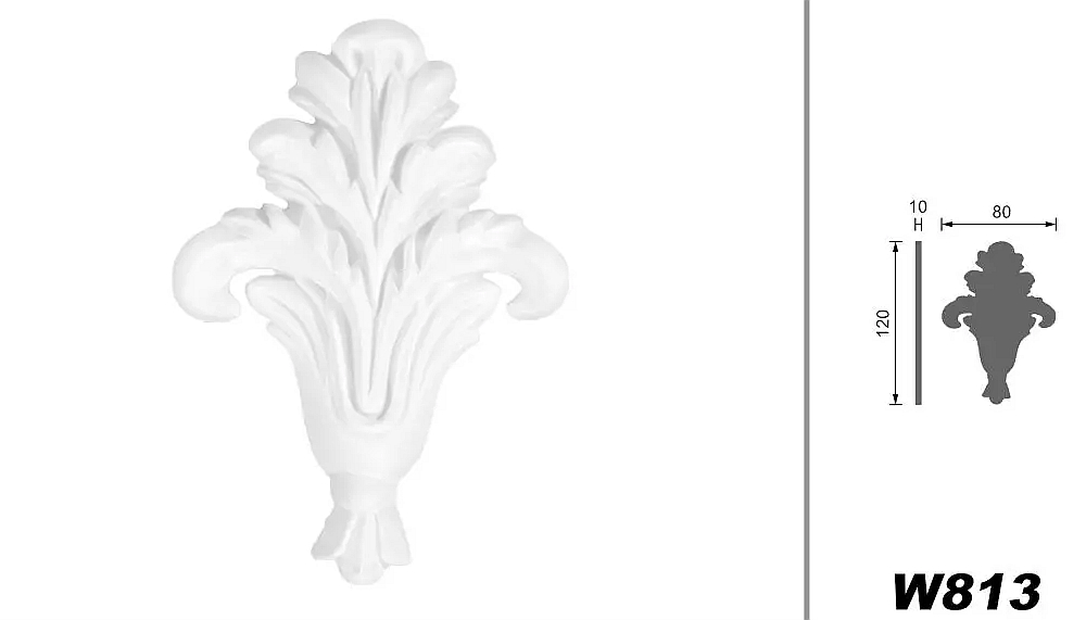 Das Innenstuck Zierelement W813 ist ein dekoratives Stuckelement aus Polyurethan-Hartschaum, das sich ideal für edle Innendekorationen eignet. Es kann auch als kleines Fassadenstuck-Element im Außenbereich zur Gestaltung von Hausfassaden verwendet werden und setzt stilvolle Akzente.