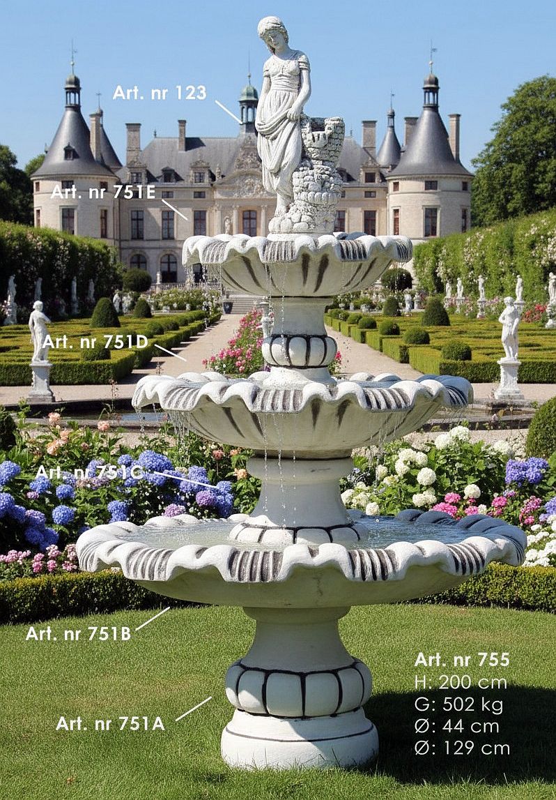 Kaskadenbrunnen mit Frauenfigur – majestätischer 3-Schalen Springbrunnen