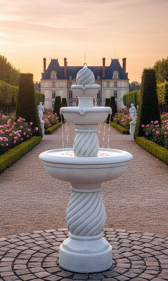 - Gartenbrunnen mit 3 Schalen und schlichten Spiral Säulensockel