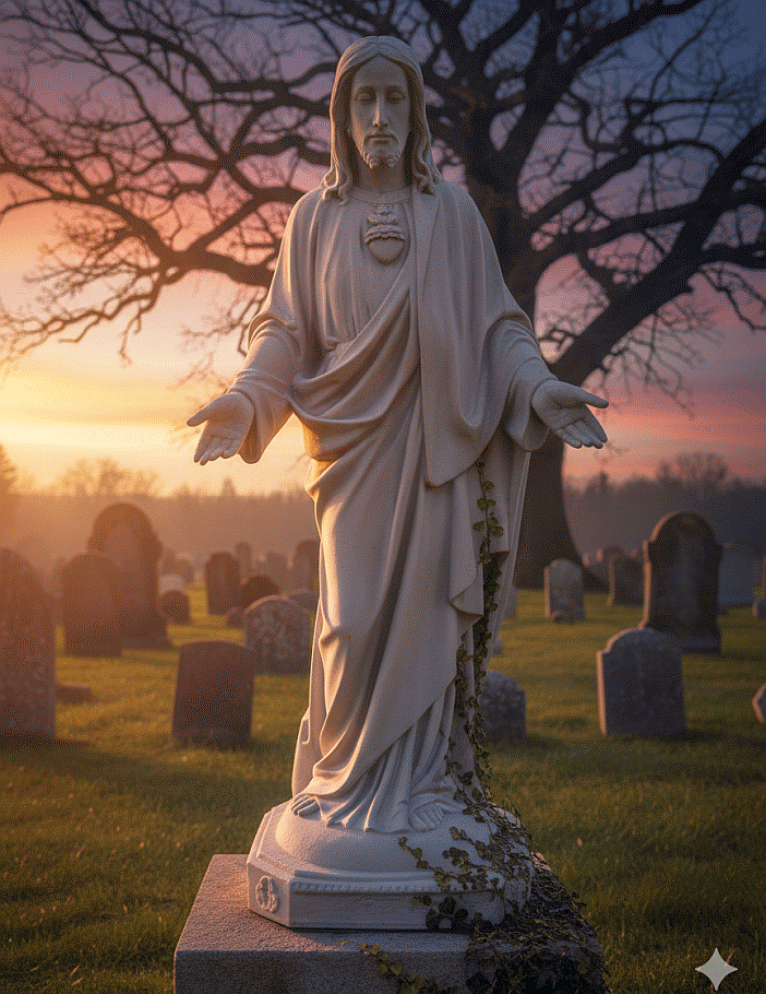 - Motiv: Lebensgroße Jesusfigur mit offenen Armen