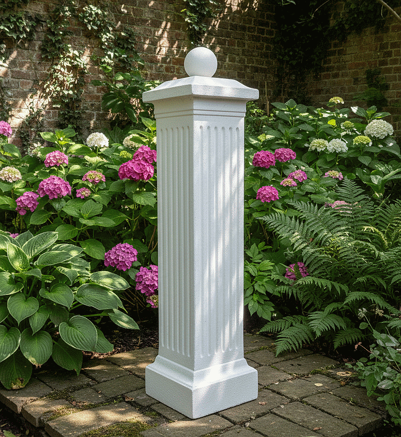 Zaunpfeiler 100cm Torpfeiler Betonpfosten für Balustraden - Betonpfeiler mit Rillen Struktur und Abdeckplatte