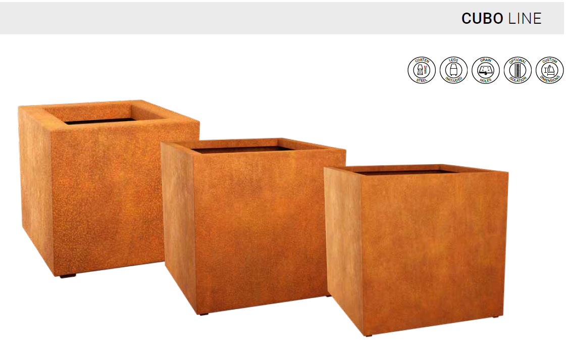 Cubo Corten Metallblumentopf – flacher, rostiger Pflanzkübel aus Cortenstahl