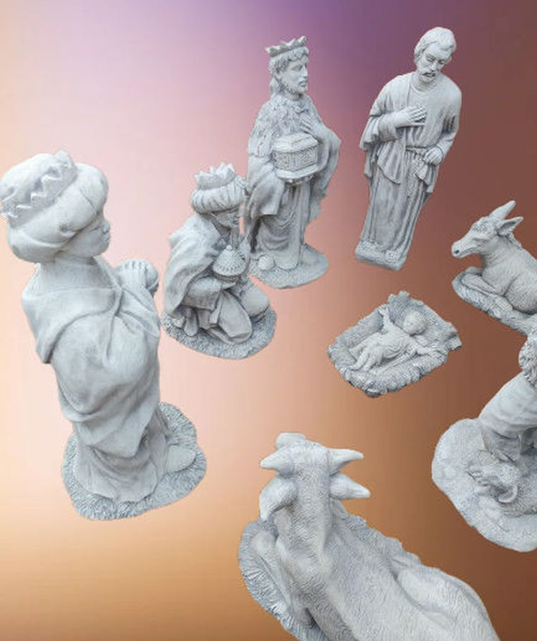 Weihnachts-Krippenfiguren als massive Steinfiguren