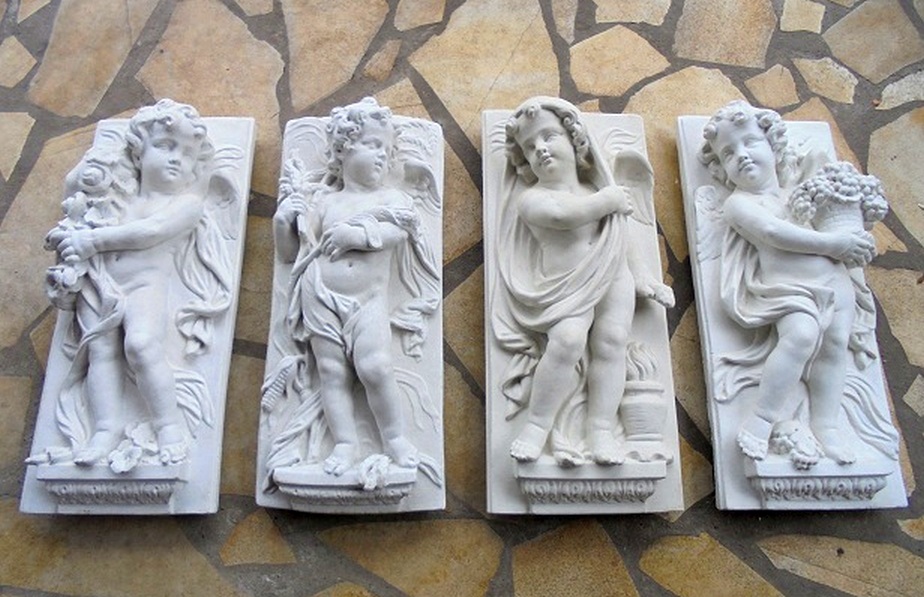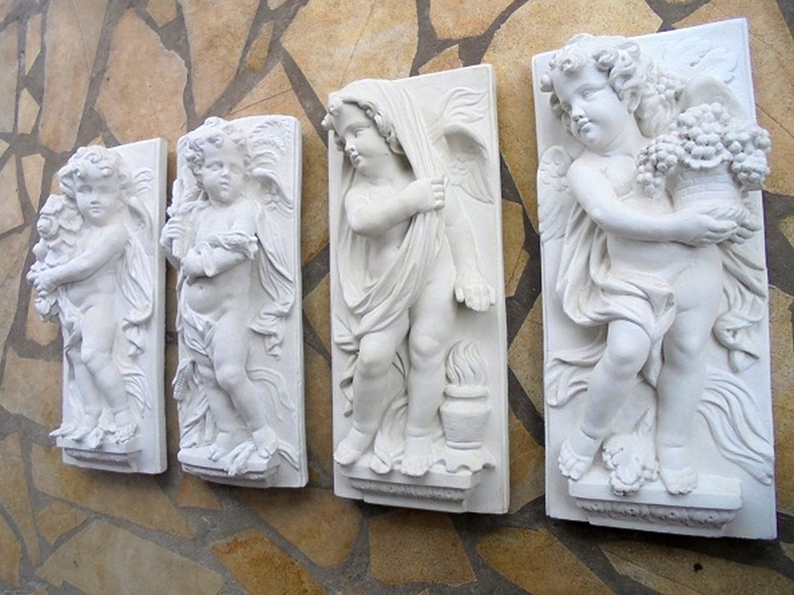 Engel Wandrelief Set 4 Stück Wandbilder Vierjahreszeiten Wandplatten Steinrelief 74cm