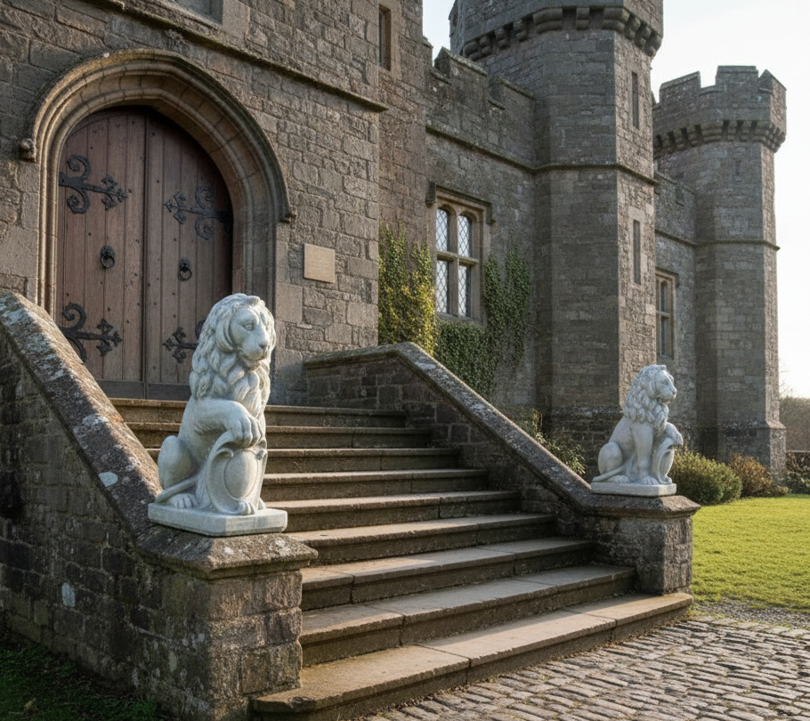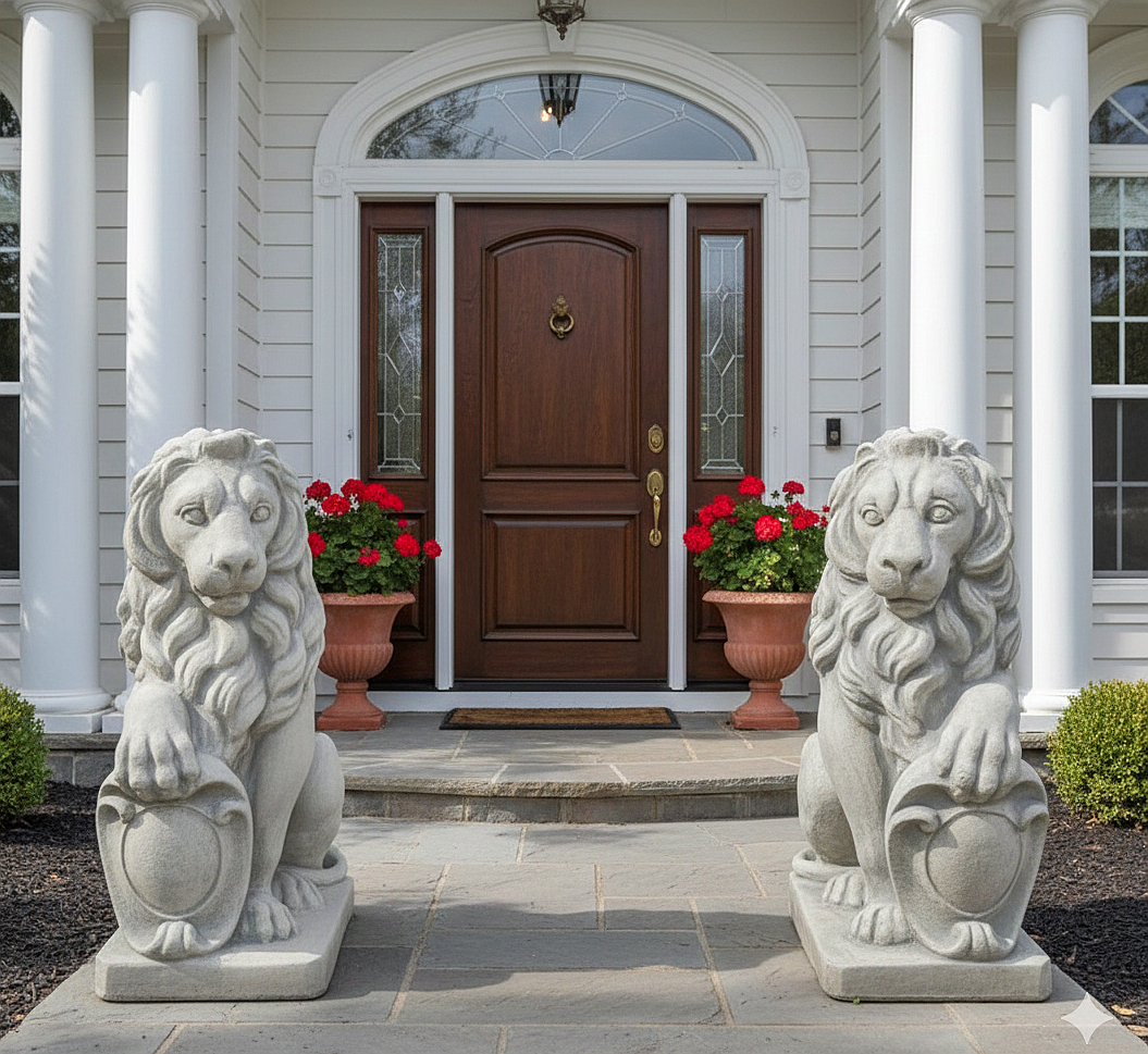 Die Gartenfiguren eignen sich hervorragend als Torwächter auf Torpfeiler, Zaunpfeilern, Betonsäulen, Podesten oder Sockeln, können aber ebenso wirkungsvoll frei im Garten, entlang von Zufahrten oder vor repräsentativen Gebäuden platziert werden. Durch die klassische Symbolik der Löwen mit Wappenschild wirken sie besonders würdevoll und unterstreichen den hochwertigen Charakter Ihres Grundstücks.