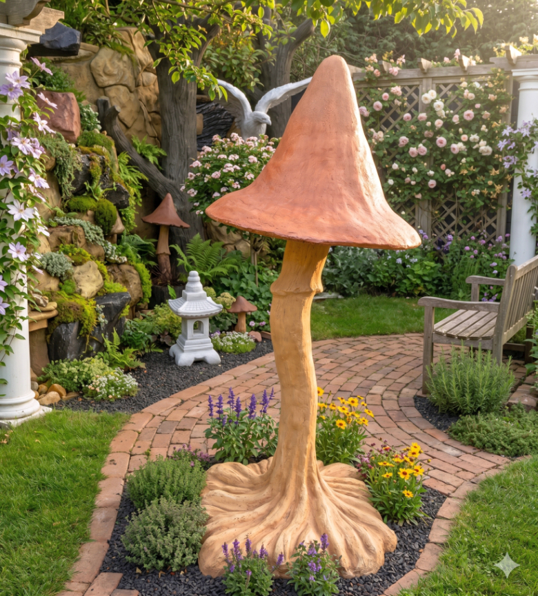 Diese eindrucksvolle Pilzfigur aus hochwertigem Steinguss vereint natürliche Optik mit langlebiger Qualität und ist ein dekorativer Blickfang für jeden Außenbereich. Mit ihrer imposanten Größe und der sorgfältig ausgearbeiteten Oberfläche wirkt die Skulptur besonders realistisch und fügt sich harmonisch in unterschiedlichste Gartenstile ein. Ob als zentrales Gestaltungselement oder als ergänzende Dekoration – dieser Gartenpilz sorgt für eine stilvolle und zugleich natürliche Atmosphäre.