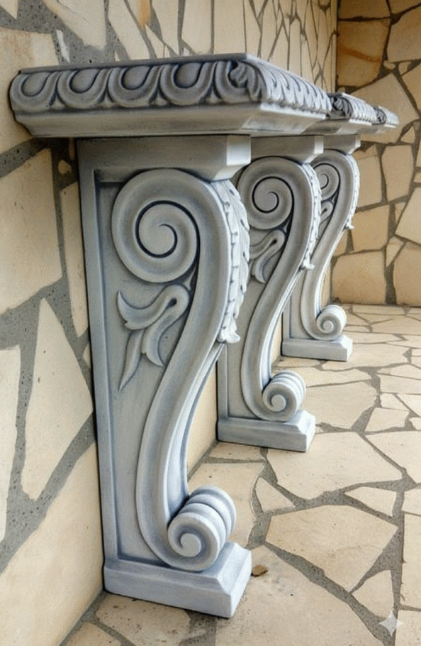 - Große Beton Wandkonsole kann auch als Kamin Schmuckkonsole Links + Rechts verwendet werden! Diese sind auf jeden Fall im Kaminbereich nicht brennbar und robust! Als Abdeckplatte kann dann individuell eine Natursteinplatte zum Einsatz kommen.