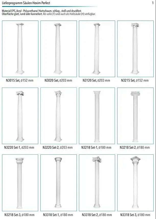SEO-Keywords: Säule rund kanneliert, Halbsäule PU Hartschaum, dekorative Säule Innenraum, Stucksäule Rundform, Polyurethan Säule, Stuckelemente Innen, HEXIM Stuck kaufen, Säulenset mit Kapitell und Basis, Innendekoration Klassisch, Architektur Säule Deko.